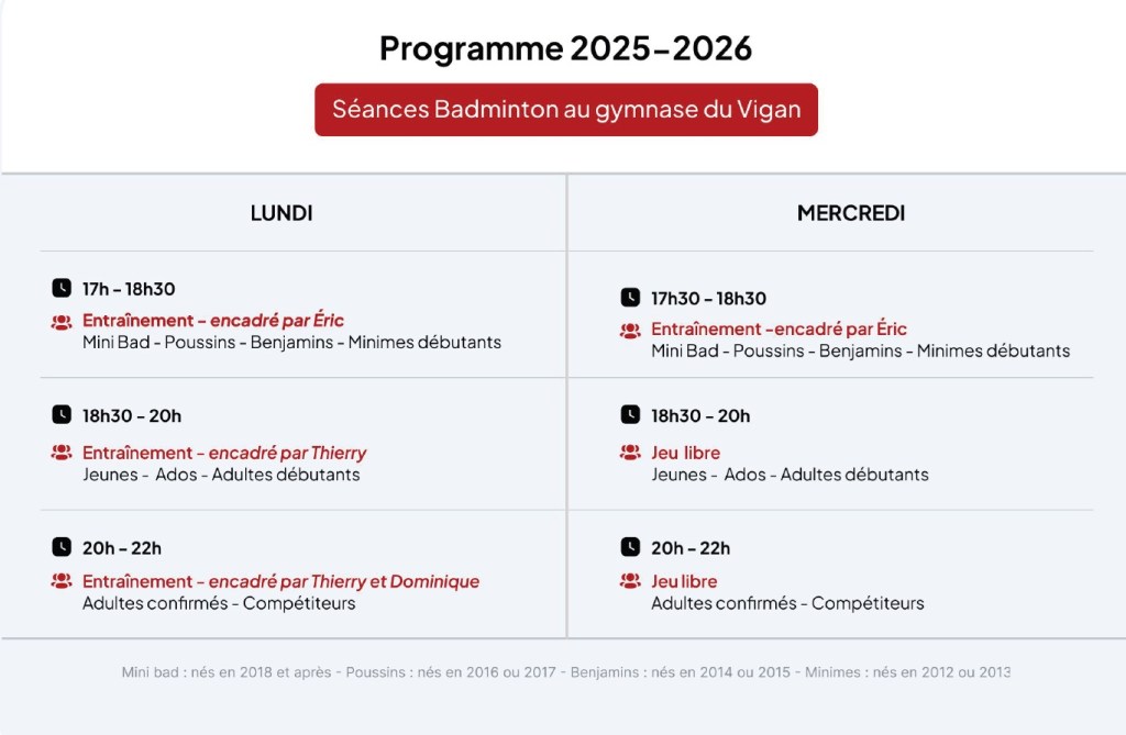 Horaires Pour visualiser le planning mensuel, les évènements, TDJ et tournois à venir, cliquez ici : Voir le planning